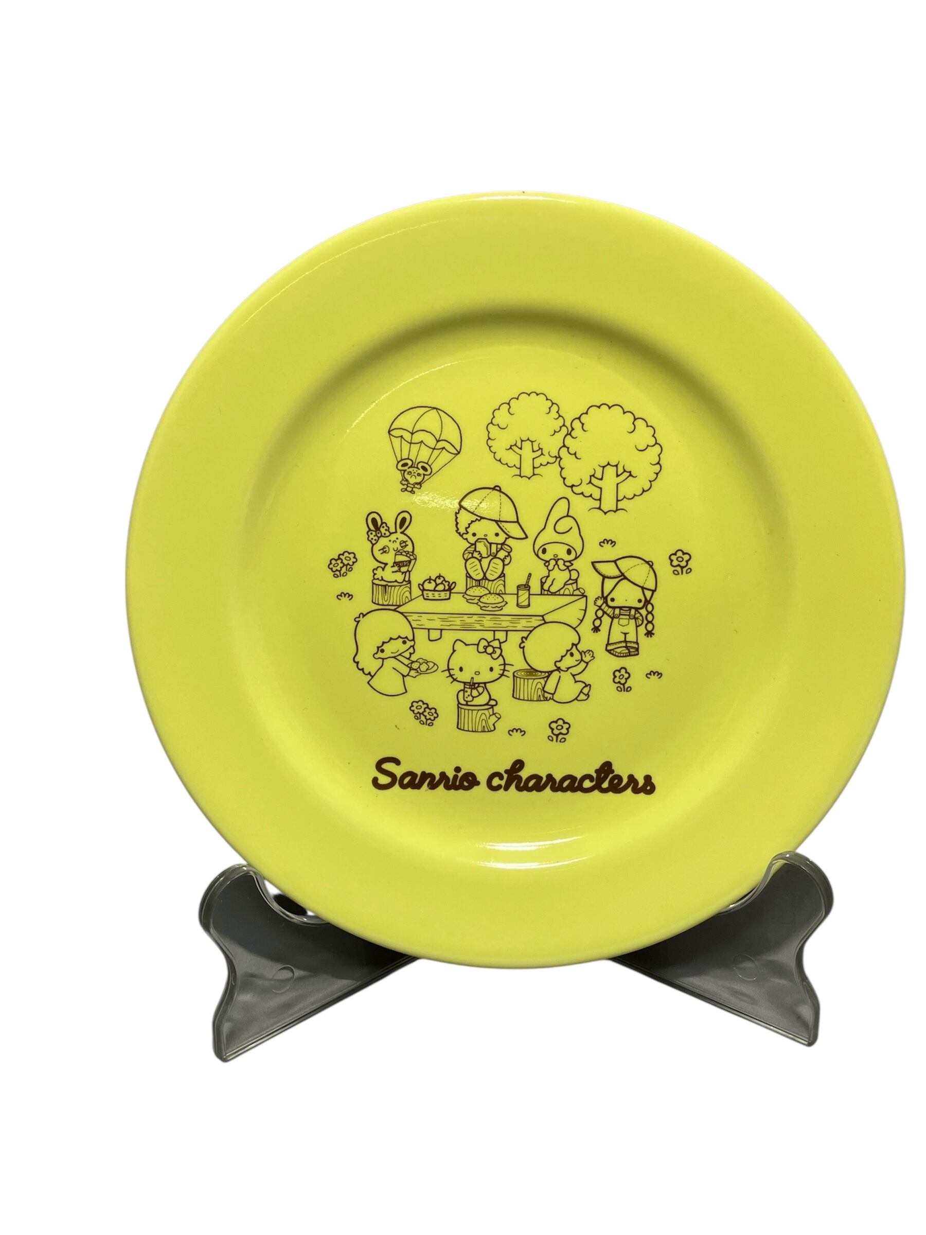 かわいらしいサンリオキャラクターたちがデザインされたケーキ皿です。